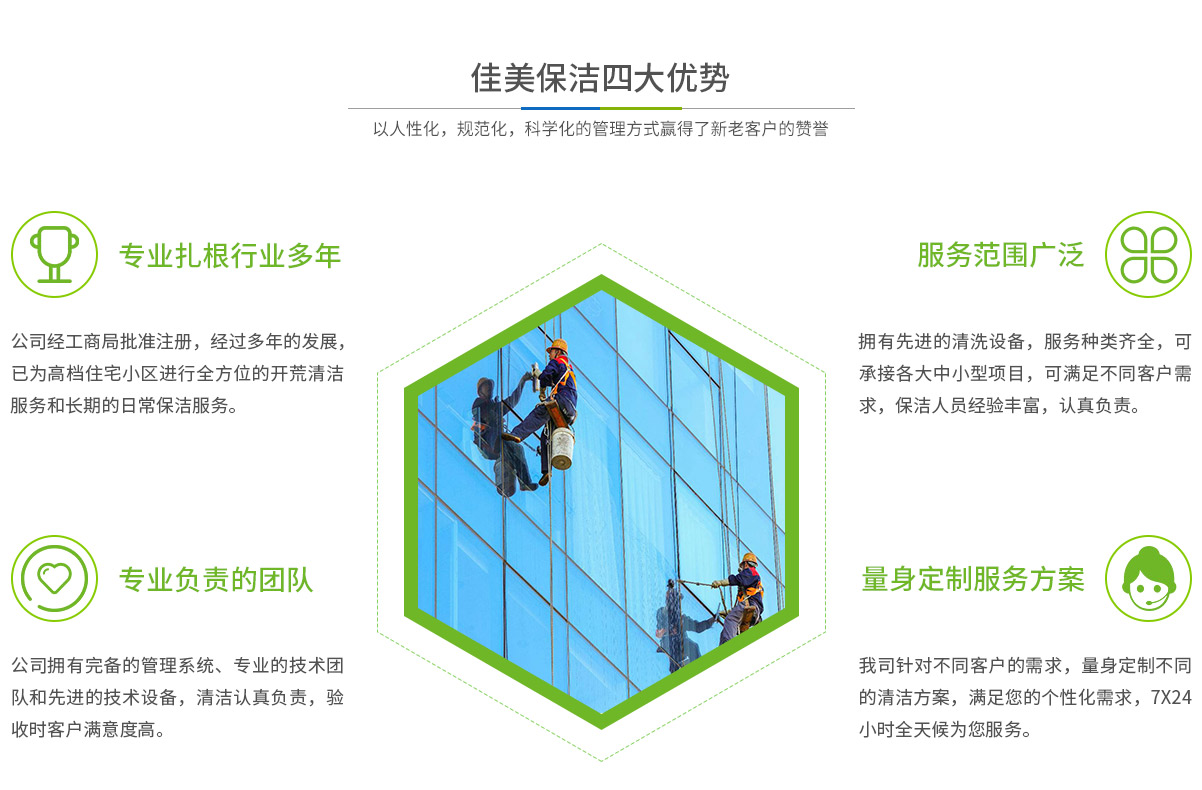 馬鞍山市佳美保潔服務(wù)有限公司是一家經(jīng)工商部門批準(zhǔn),具有法人資格專業(yè)清洗,馬鞍山保潔服務(wù)的公司,自創(chuàng)辦以來,一直致力于企業(yè),家庭,賓館,學(xué)校,別墅,酒店,商廈,公共設(shè)施等場所提供科學(xué)的日常保潔和清潔保護(hù)的服務(wù)公司,有著豐富的管理服務(wù)和保潔經(jīng)驗...